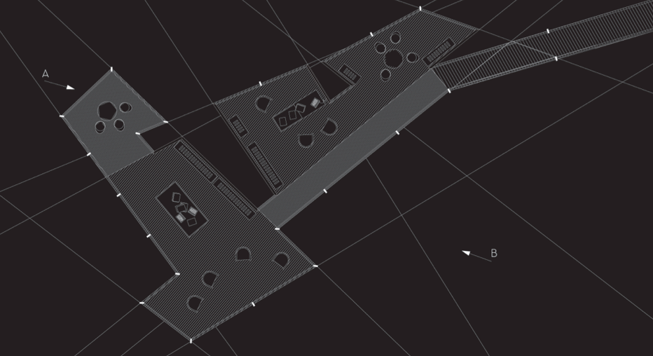 The floor and roof systems consist of lightweight metal panels that tie to custom fabricated structural locking mechanism. Where cable defines the building's perimeter, the structural ties join cable and panel alike. A slightly similar module is sued when the cable traverses an interior space, serving as support redundancy for floor and ceiling panels. Other spatial elements, like walls, railings and support systems are attached to the module cable ties. Due in part to its customizable format, the project aims to propose an alternative to temporary structures for ecological studies in mountainous and forested enclaves.