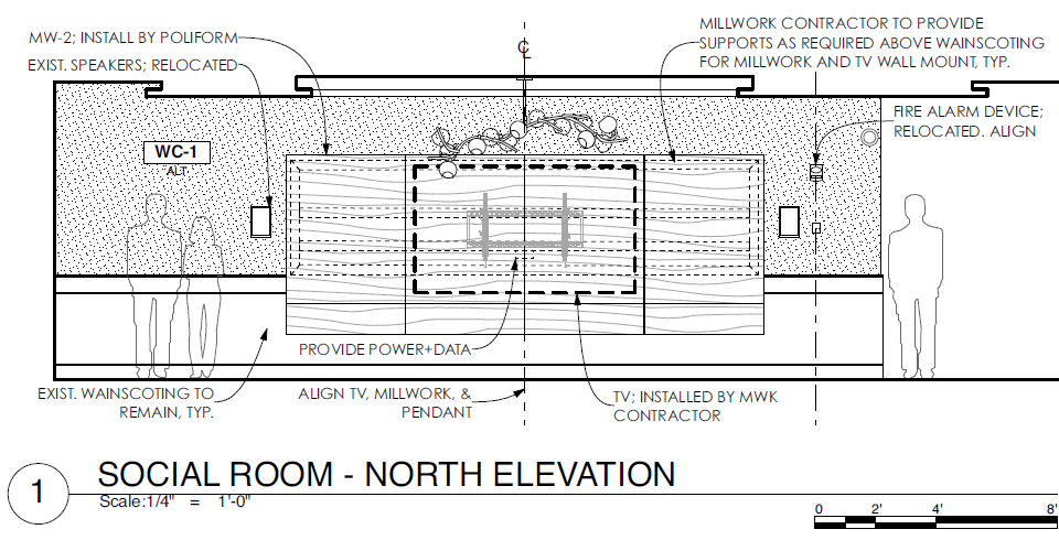 Interior perspective and Modular Ties detail.
